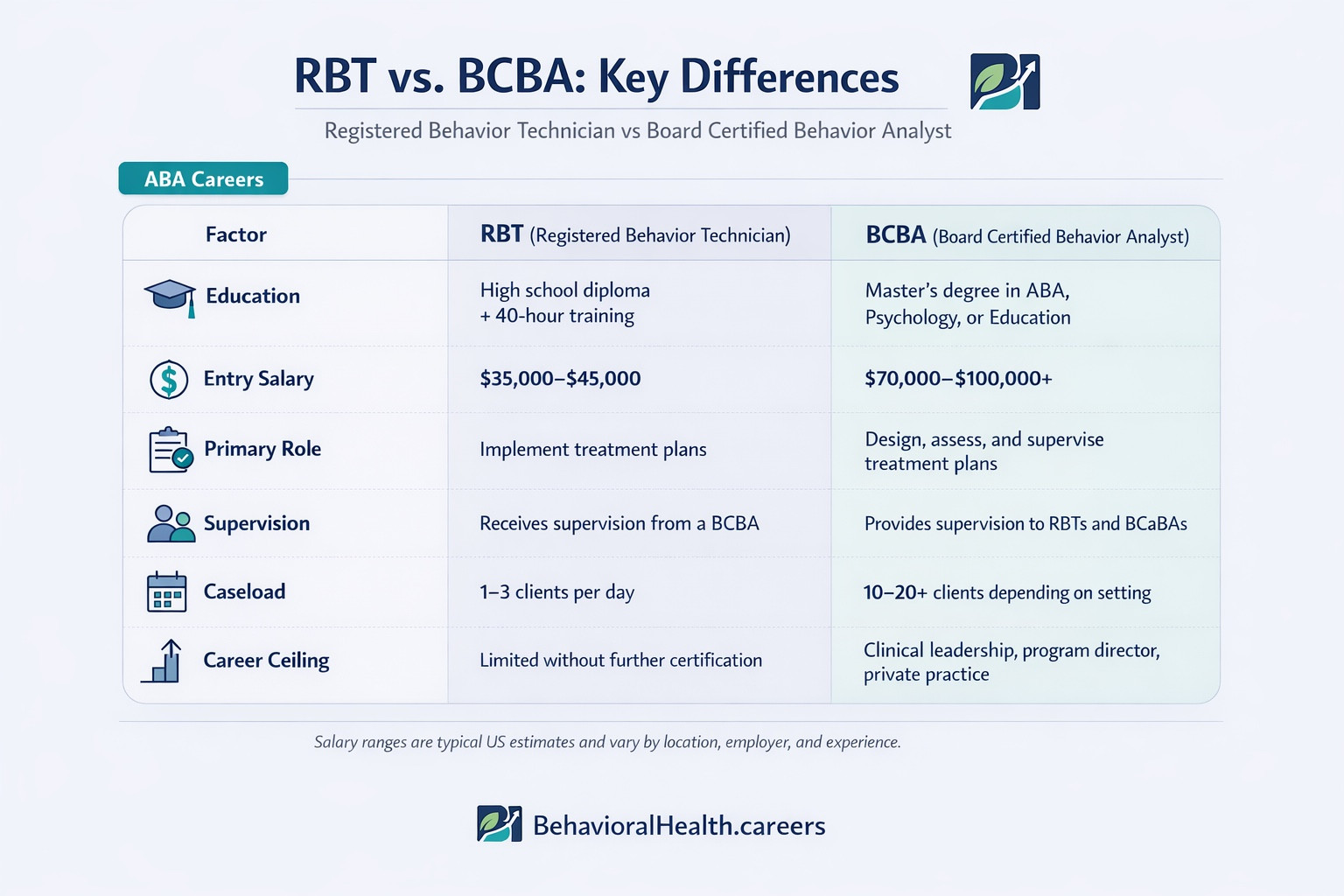 At a Glance: RBT vs. Board Certified Behavior Analyst (BCBA)