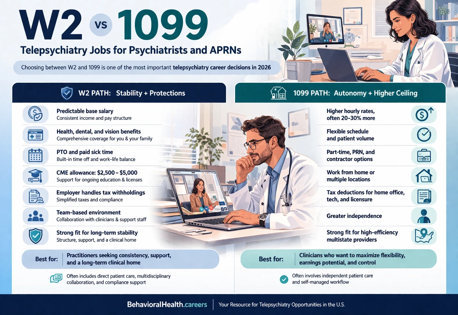 W2 vs 1099: Weighting Differences for the Modern Telehealth Psychiatric Professional
