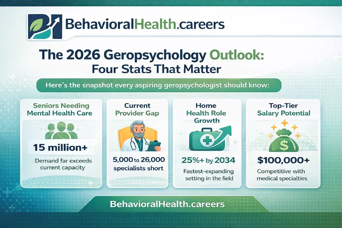 If you’re exploring behavioral health careers or looking to specialize, geropsychology represents the rare intersection of urgent need, competitive pay, and long-term job security.